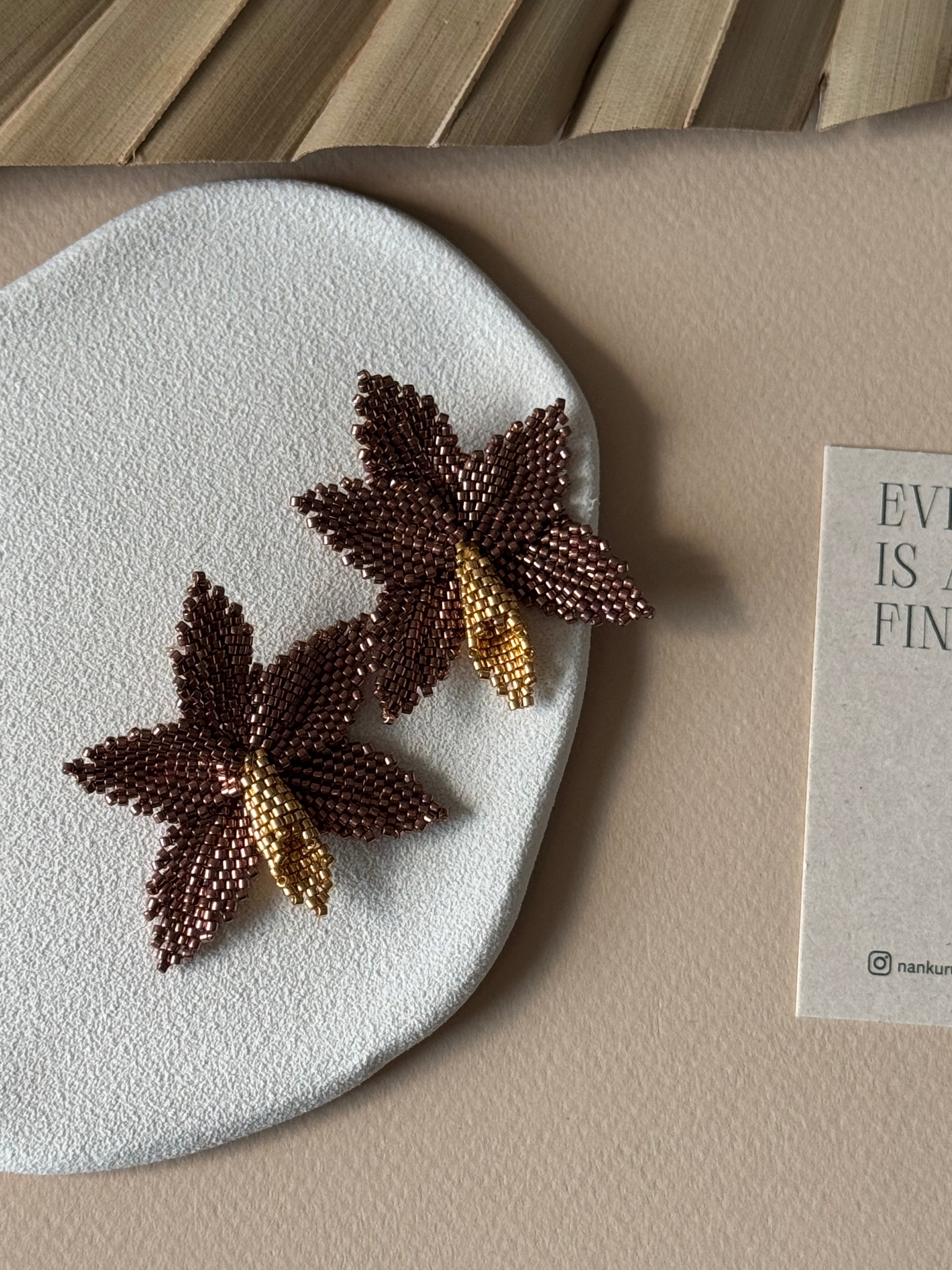 Orquídeas Tejidas a mano en Miyuki . Una pieza hecha a mano que combina delicadeza y brillo para acompañarte en cualquier ocasión.